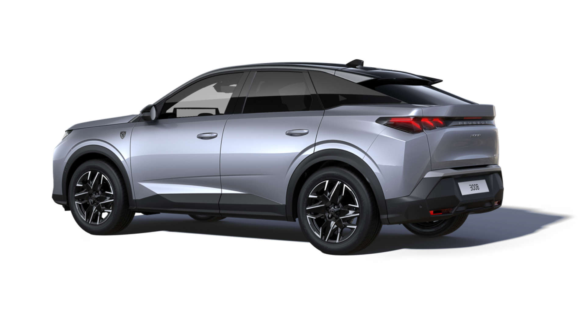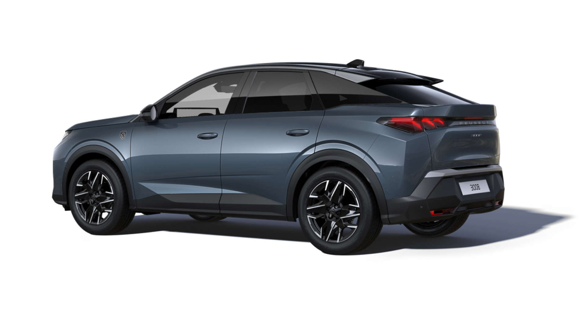 Новий Peugeot 3008 на дорозі, вигляд ззаду з лівого боку